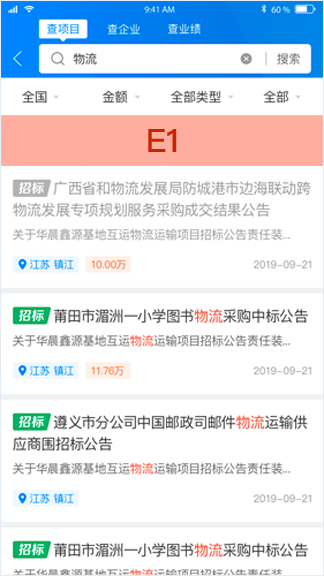 E1 | 搜索列表 | 750*160px | 图片 | 3000元/周 |